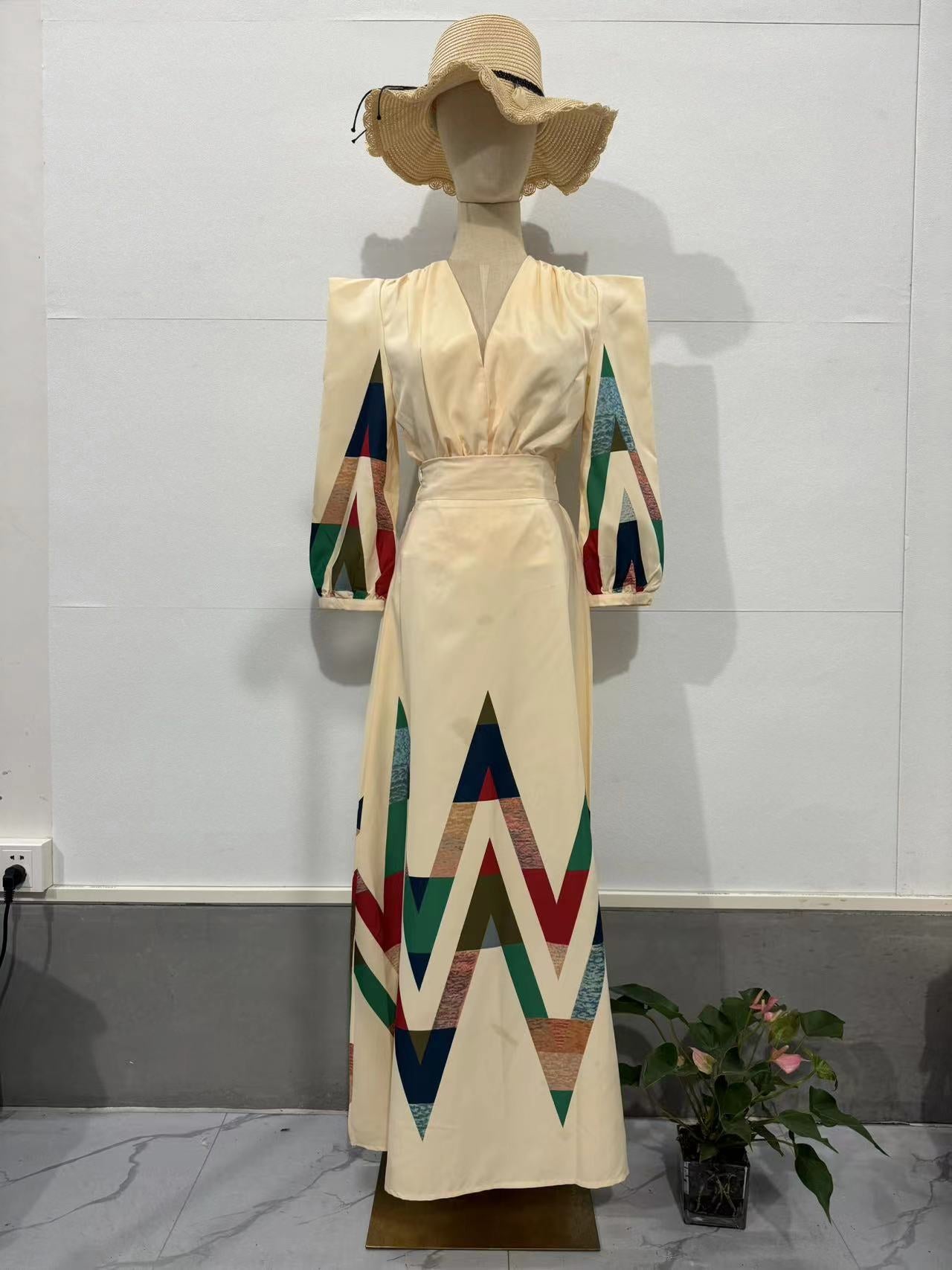 Swing collar camisole patchwork dress long skirt for women